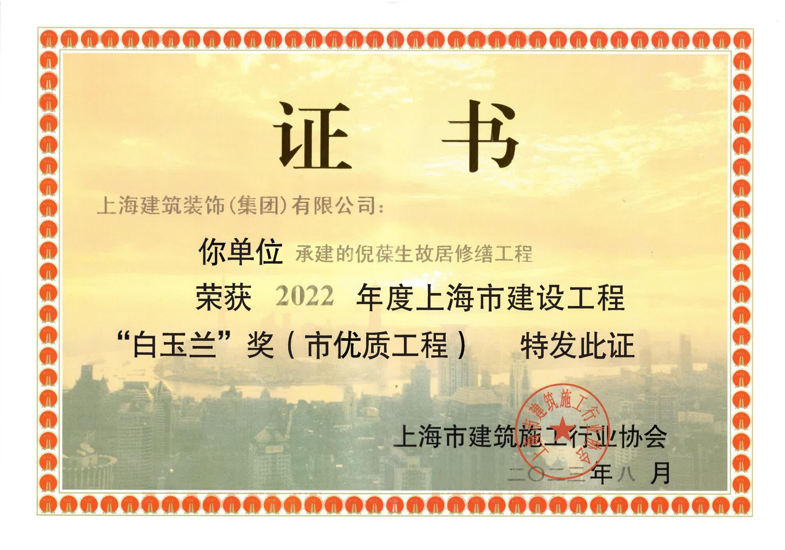 2022年度上海(hǎi)市建设工程“白玉兰”奖(倪葆生故居修缮信兵工程)