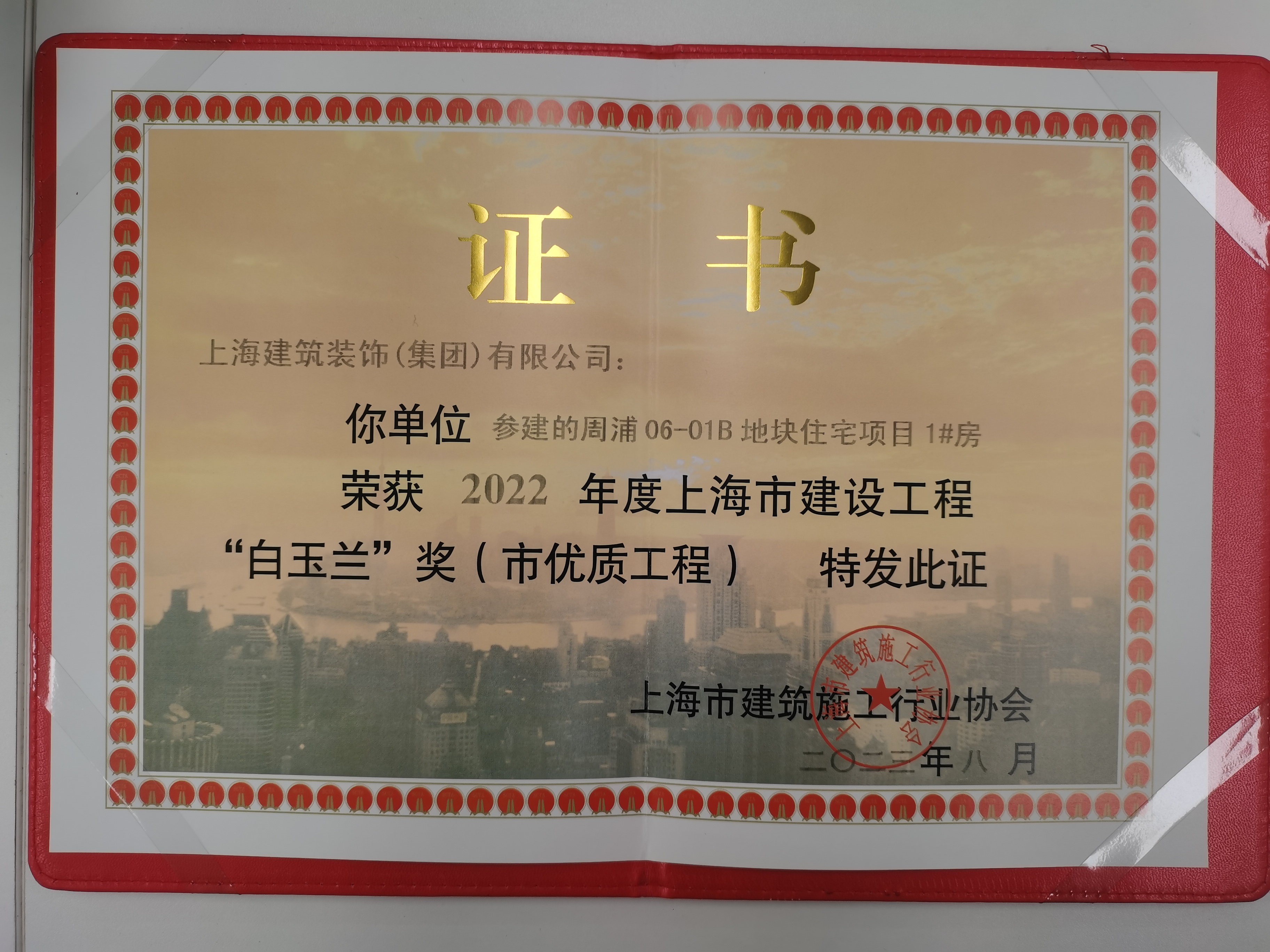 2022年度“白玉兰”奖奖杯(周浦06-01B地块住宅项目3#房)